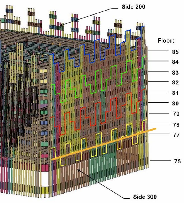 First, take the NIST graphic and duplicate the step pattern along the top face every 3 floors as shown.