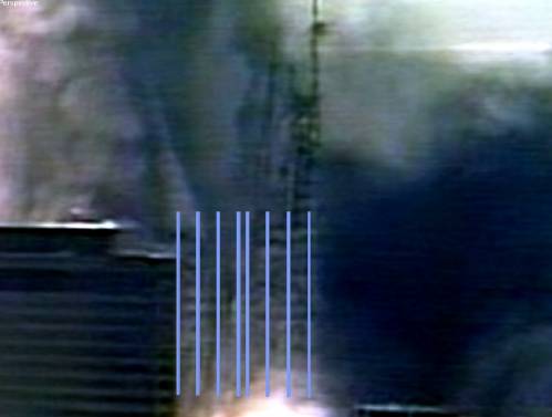 Using CC 504 as a reference line, The video embedded just above lets us catch a vivid glance of many core columns to the left of CC 504., both standing and falling away. This is the east side of the core, column pairs 505-605 to 508-608.