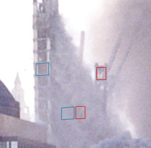 All observed exterior walls under the collapse initiation elevation of each tower fell away from the building as large unbuckled interconnected sheets of various sizes during the collapses. This fact becomes quite obvious as the observed movement and rubble layout on each side of the footprint is studied. This video is of west and north wall global movement. Please observe the obvious outward motion of the visible walls: