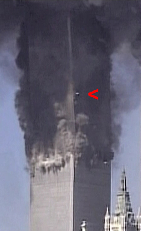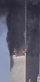 This gif consists of 4 images. the first 2 images are the same as the ones shown just before. The 2 additional images show the distinct row of 75th floor ejections emerging.