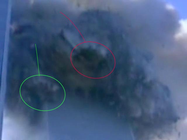 Up to this moment only the 78th floor ejections were expanding and visible.