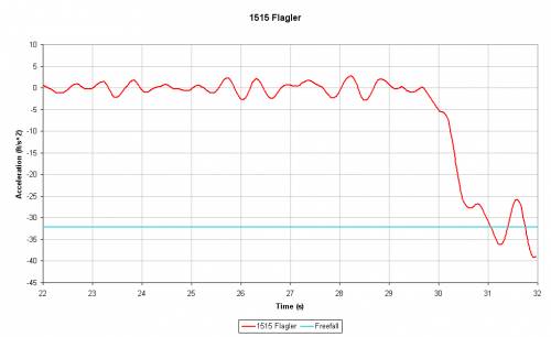 Acceleration of the northwest corner seems to exceed gravitational acceleration for a short period. This may be able to be explained through the perimeter coupling to the core. In this sense the core is literally pulling the perimeter down.