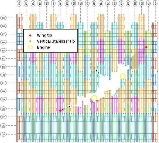 starboard wing-tip penetration point.