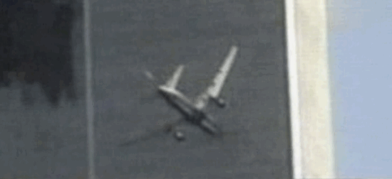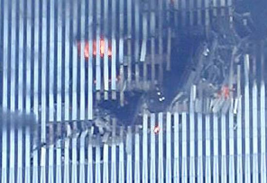 penetration point and the starboard wing-tip penetrating the façade at the