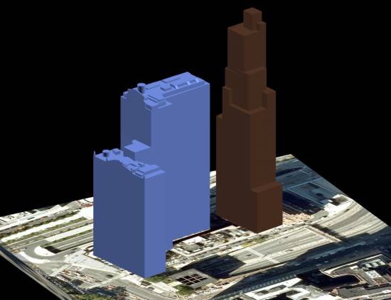 detailed public-domain model of the WTC Complex is used for all three