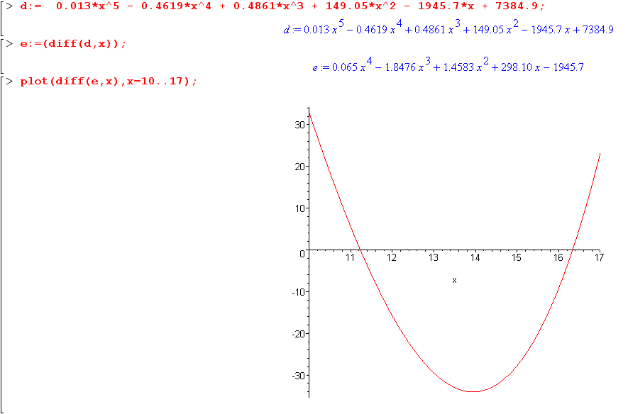 The initial polynomial is simply done with excel, then a quick 2nd order plot in Maple...